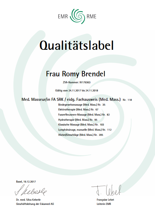 • Oktober 2017 Abschluss des Med. Masseur mit eidg. FA